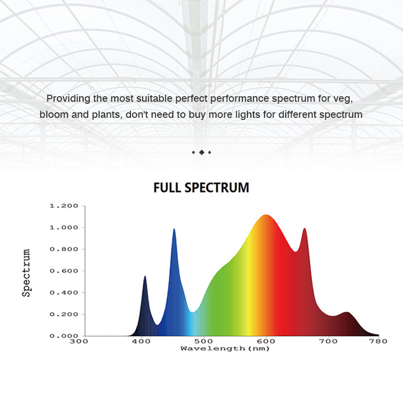 - Full Spectrum 300-800 NM White+Red (IR,UV)